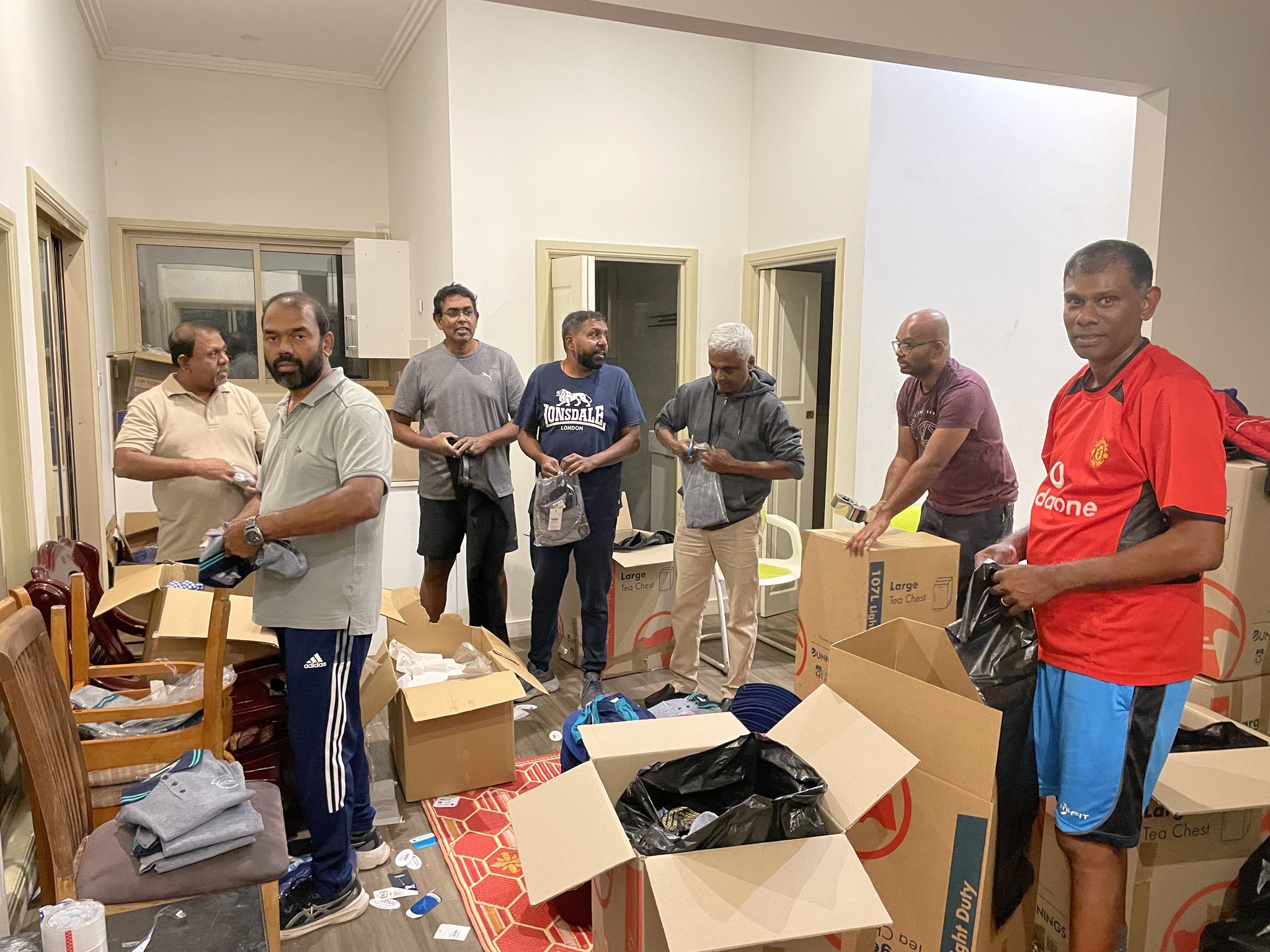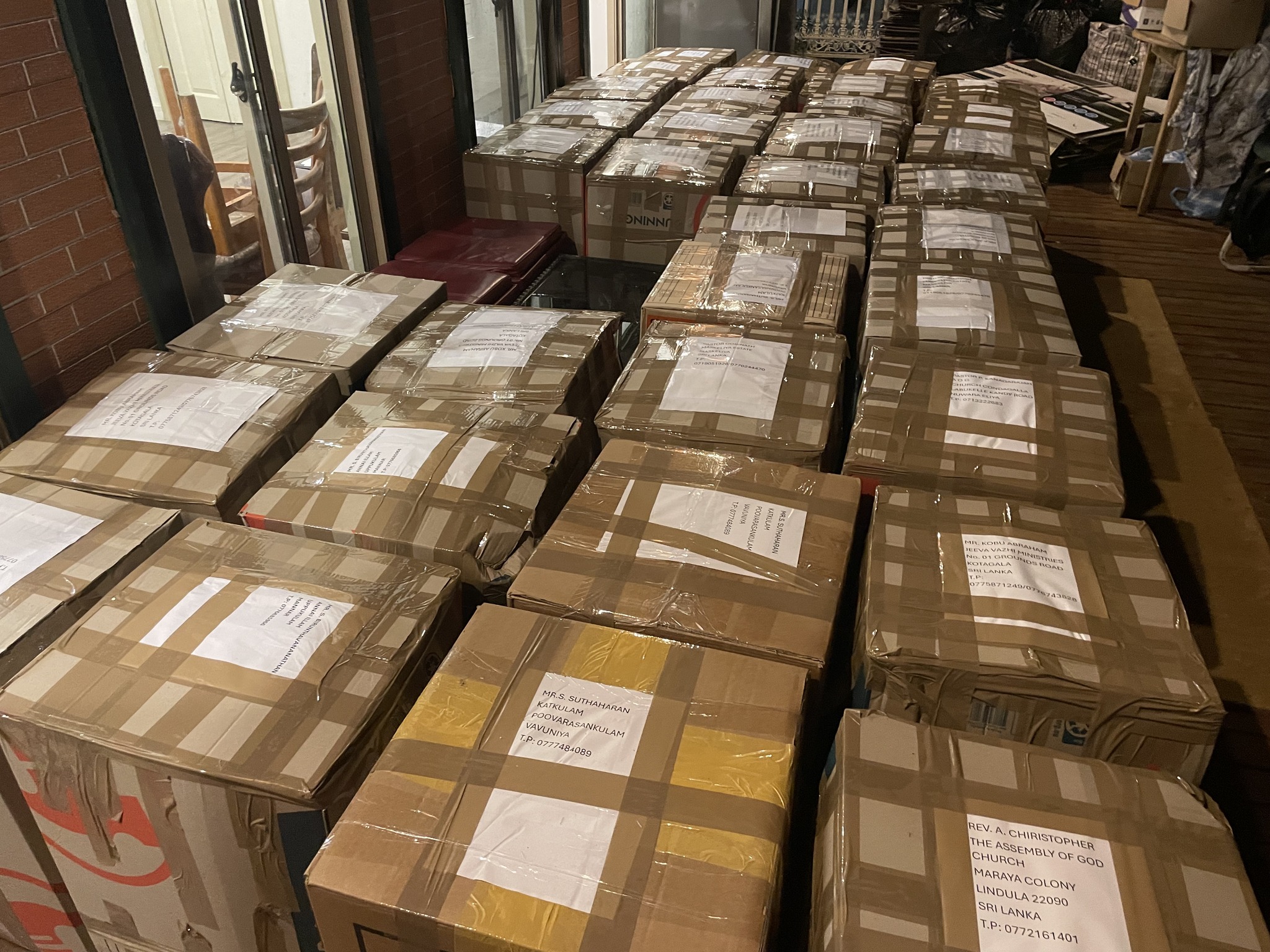 Thirty-five boxes filled with much-needed, good-quality clothes and footwear were packed and sent to various parts of the hill country ( Kotagala , Nuwara Eliya, Maskeliya ).